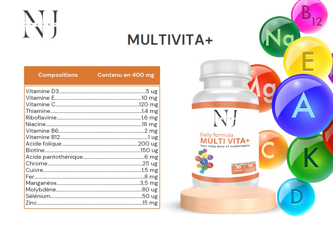 Ce complément contient 12 vitamines dont les vitamines E, C, D et du groupe B, mais aussi de nombreux minéraux. Les aliments de notre alimentation quotidienne sont de plus en plus pauvres en vitamines et minéraux et il peut être intéressant de compléter avec des multivitamines pour répondre aux besoins de notre corps. Les sportifs ont des besoins plus importants en vitamines et minéraux du fait de la pratique sportive.