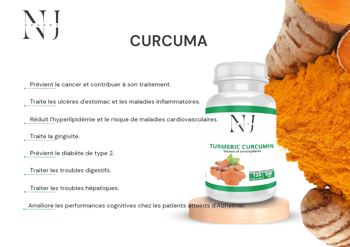Avant tout, il soutient la santé articulaire en apaisant les inflammations, ensuite améliore la digestion en stimulant la production de bile, enfin, il renforce le système immunitaire. Parce que le curcuma est bénéfique pour la santé cardiovasculaire et la peau, donc il est plus apte à protéger contre le vieillissement prématuré.